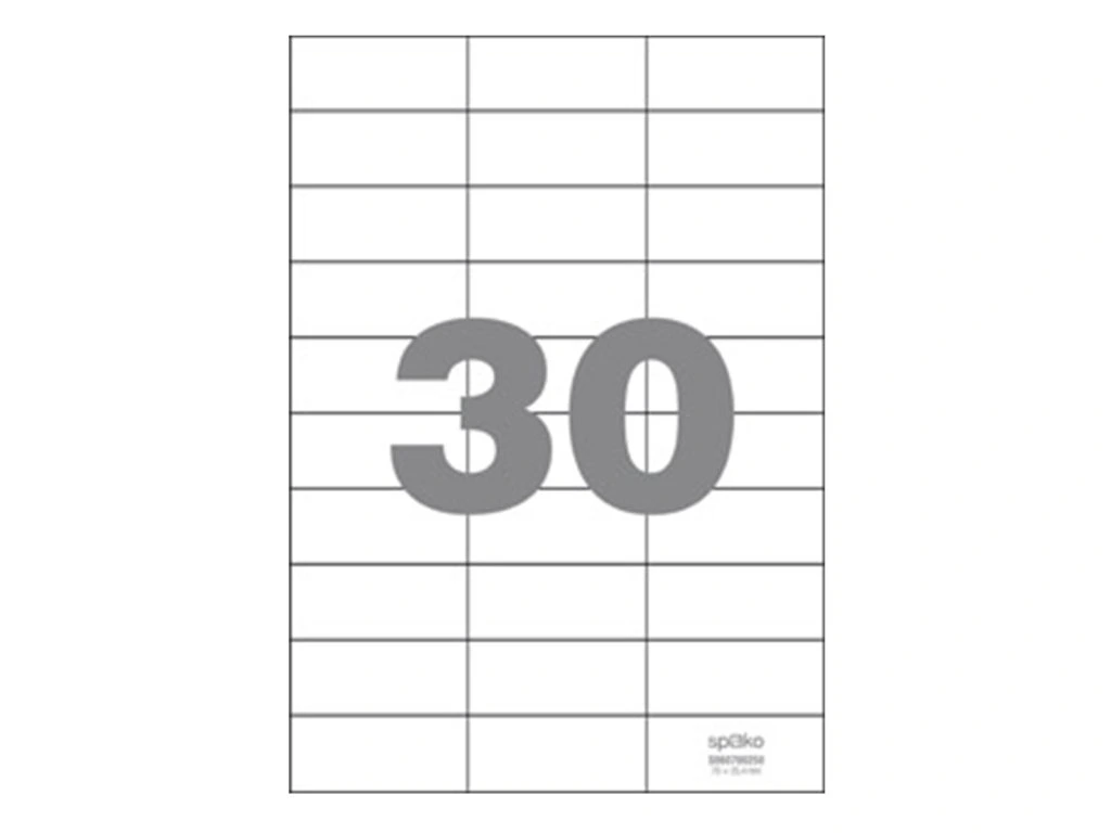 Univerzální kancelářské papírové samolepicí etikety, vhodné pro inkoustové, laserové tiskárny a kopírky. Etikety jsou vyrobeny násekem archu A4.- rozměr etikety: 70 × 29,6 mm