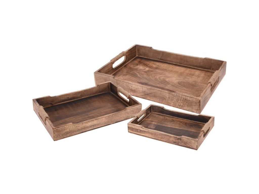 EXCELLENT HOUSEWARE Podnos servírovací z mangového dřeva sada 3 ks KO-A55500140