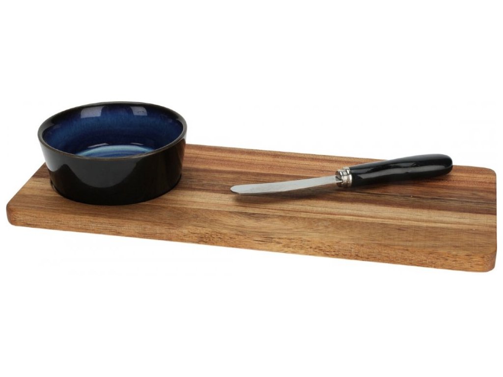 - servírovací set podnosu, misky a nože pro nejrůznější příležitosti- ideálně použijete při servírování předkrmů- materiál: kamenina s lesklou glazurou, akátové dřevo- stylový podnos z akátového dřeva- roztírací nůž s čepelí z nerezové oceli- akátové dřevo je robustní a má krásnou texturu- perfektní pro servírování předkrmů, pochutin, dipů- žáruvzdorné do 200 °C, misku lze využít také k zapékání- miska je vhodná do myčky nádobí- sada obsahuje servírovací tác, misku a nůž- rozměry podnosu: 30 x 12 x 1,2 cm- rozměry misky: 9 x 3,5 cm- nůž 14,9 cm- barva: tmavě modrá- značka: Excellent HousewareDoplňkové parametry