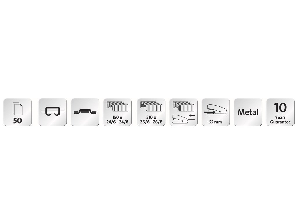 Výkonné sešívací kleště s ergonomickou rukojetí. Celokovový výrobek. Otočná matrice pro otevřený a uzavřený způsob sešívání.Doplňkové parametry
