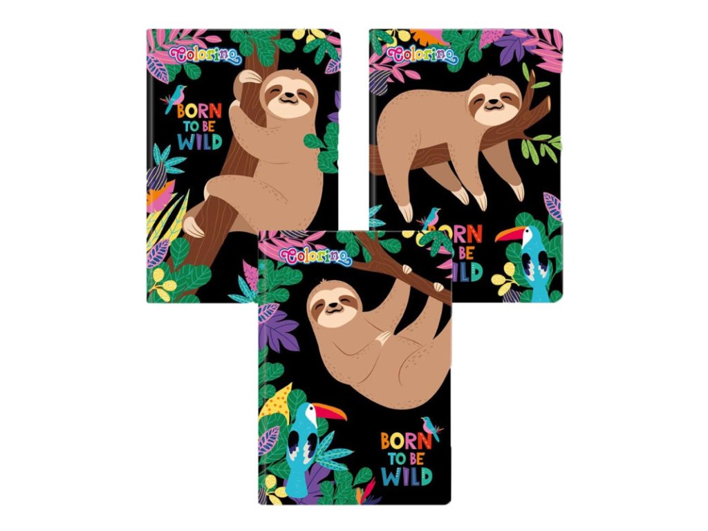 kolekce sešitů s barevnou a pevnou obálkou usměvavého lenochoda, předtištěná jmenovka a tabulka s rozpisem pracovního týdne uvnitř sešitu, formát: A5, 64 listů, 70 g2 , linkovaný, materiál: odolné PP, mix 3 motivůDoplňkové parametry