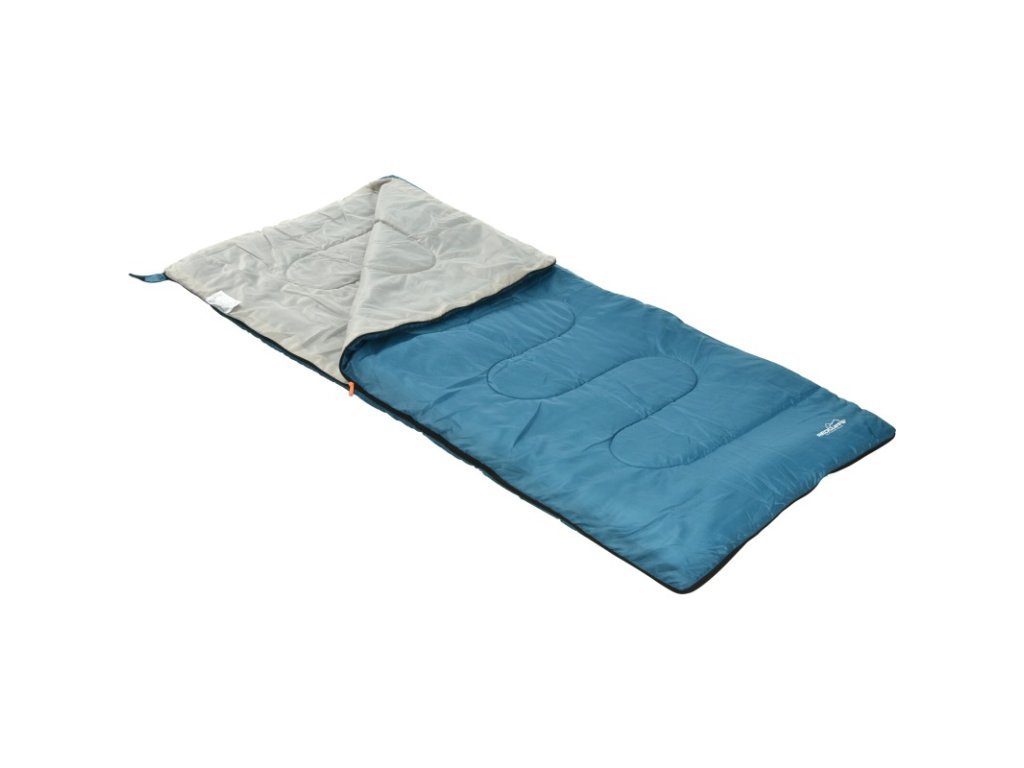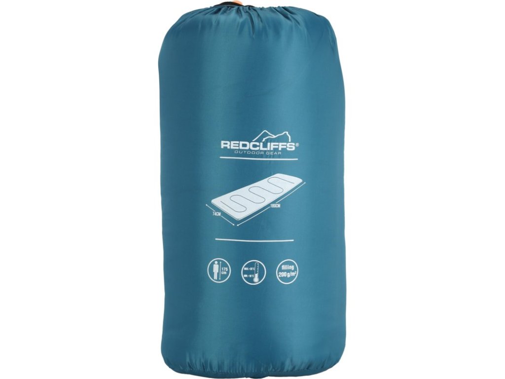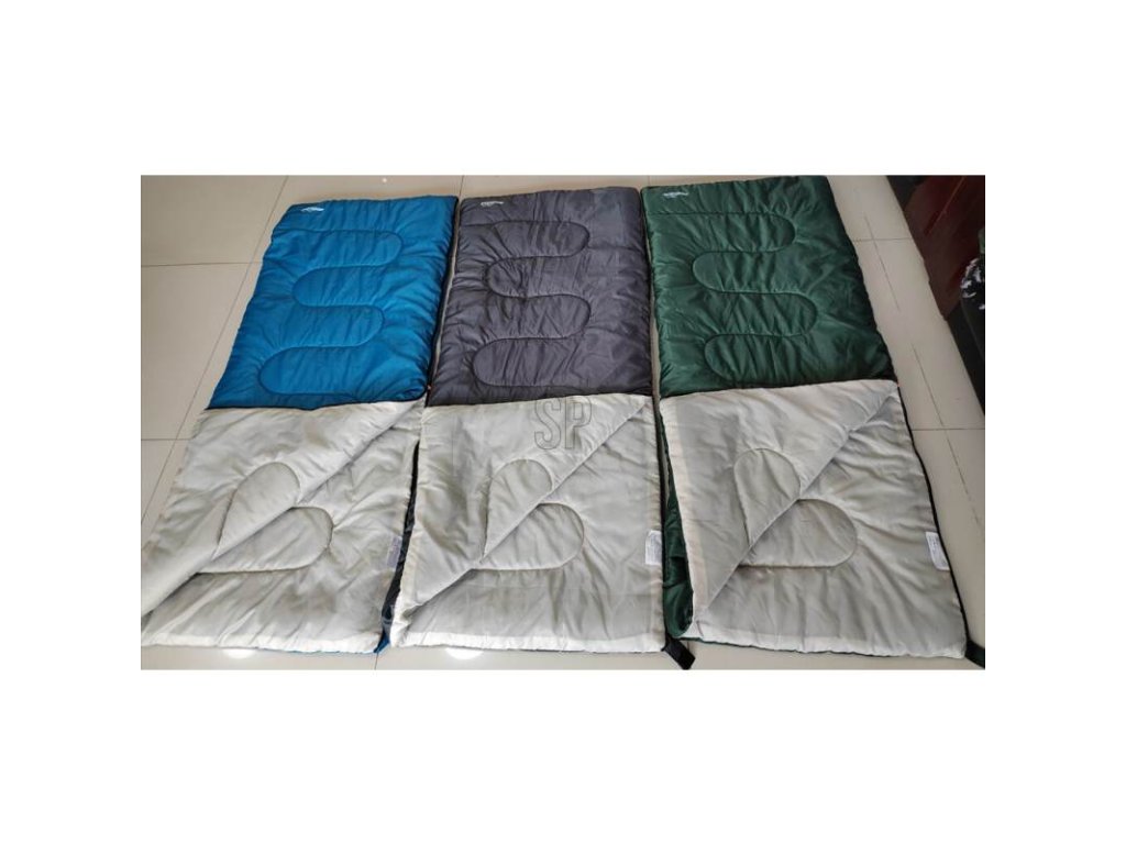 spací pytel obal 180x74cm, vnější materiál 190t polyester, podšívka 190t, výplň polyesterové vlákno 200g/m2, s-šití, normální plnicí pytel s potiskem a logem, nylonový zip s 1 tahákem, čtvercový popruh na suchý zip, vnitřní barva světle šedá, logo na spacím pytli a pytli, pro +10 - +20 stupňů celsia, 3 různé barvy: modrá, zelená a tmavě šedá, každá s visačkou a štítkem na přišití.Doplňkové parametry