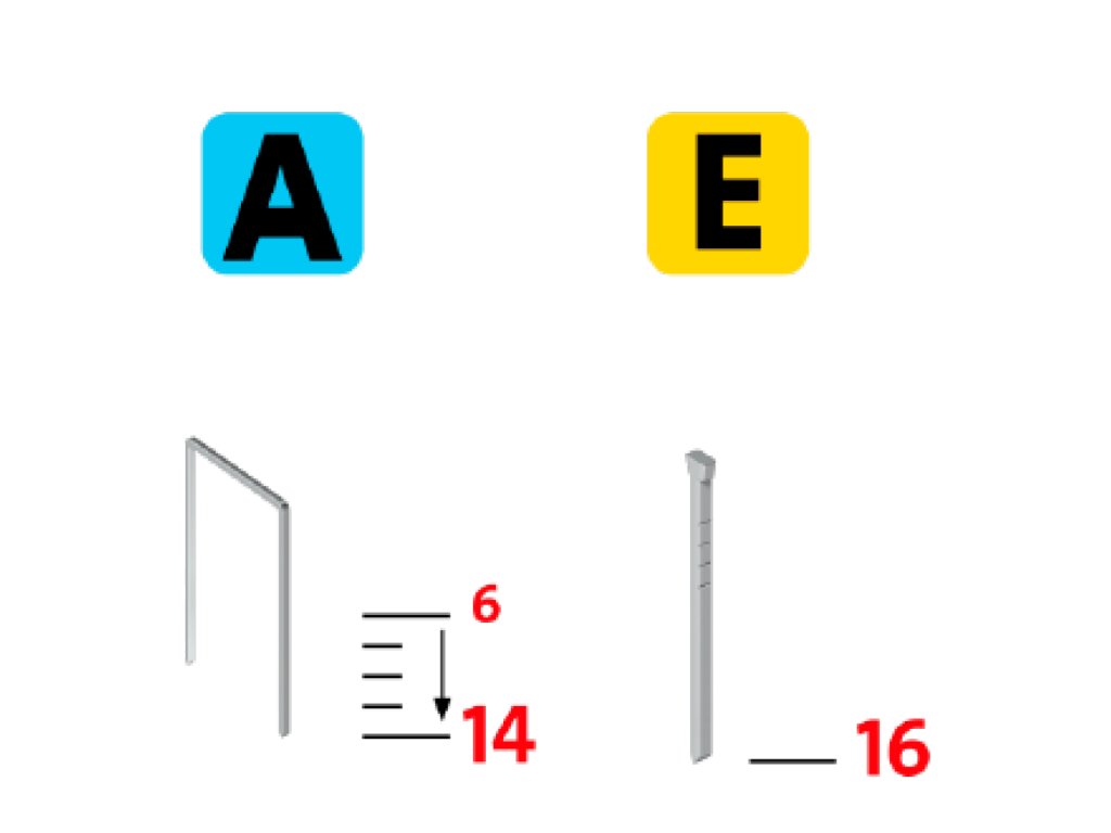| kapacita zásobníku: | 150 ks - typ A/ 6 - 14 mm, hřebíky 85 ks - typ E/ 16 mm |