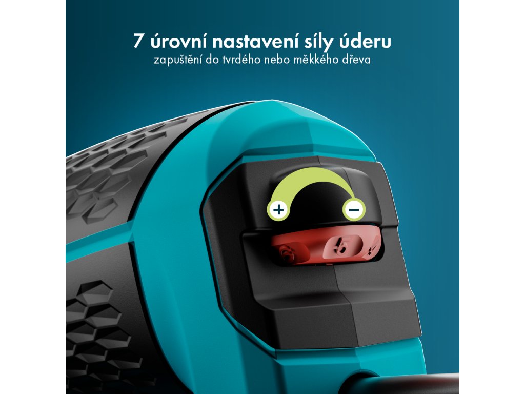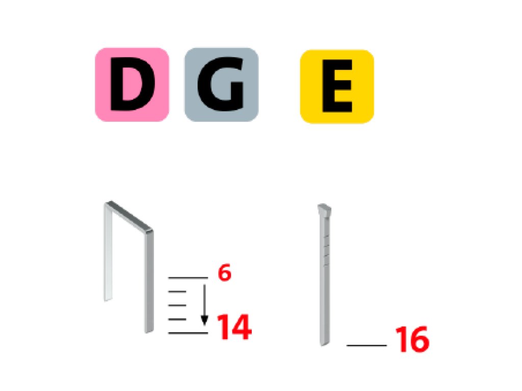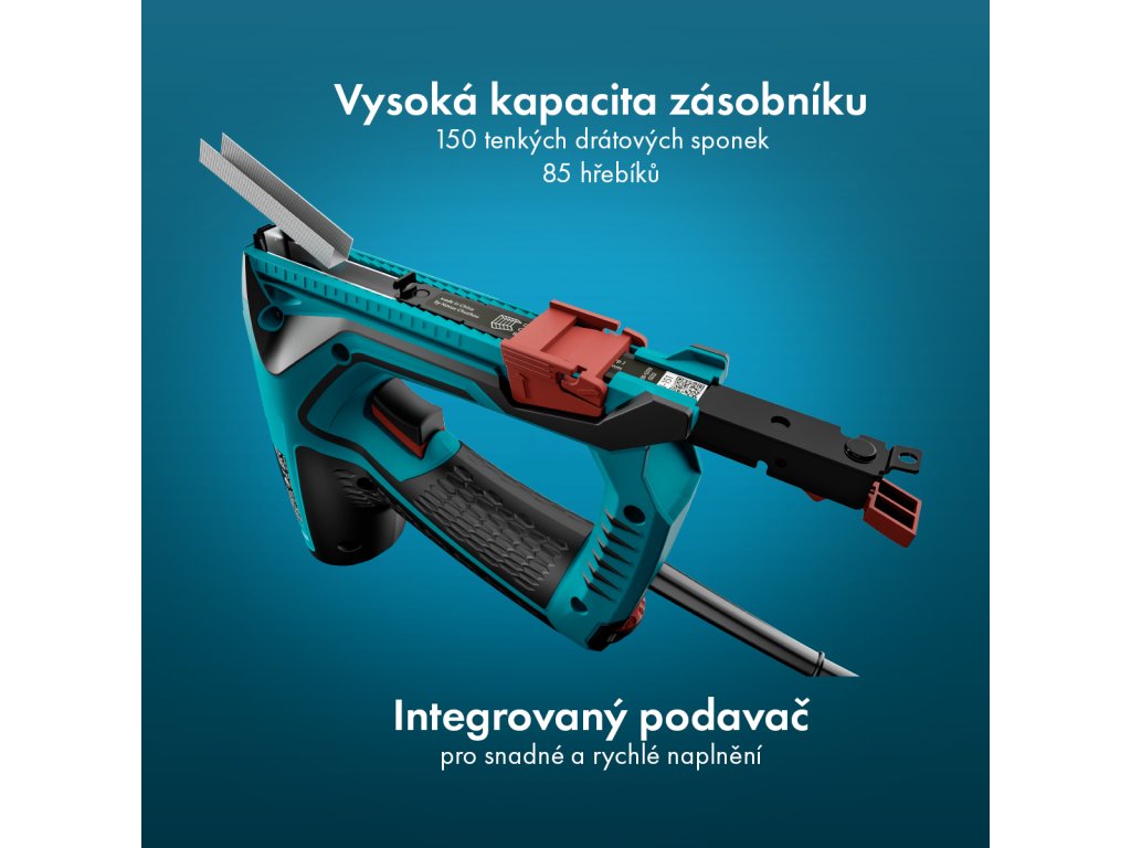 | kapacita zásobníku: | 150 ks - typ D, G/ 6 - 14 mm, hřebíky 85 ks - typ E / 16 mm |