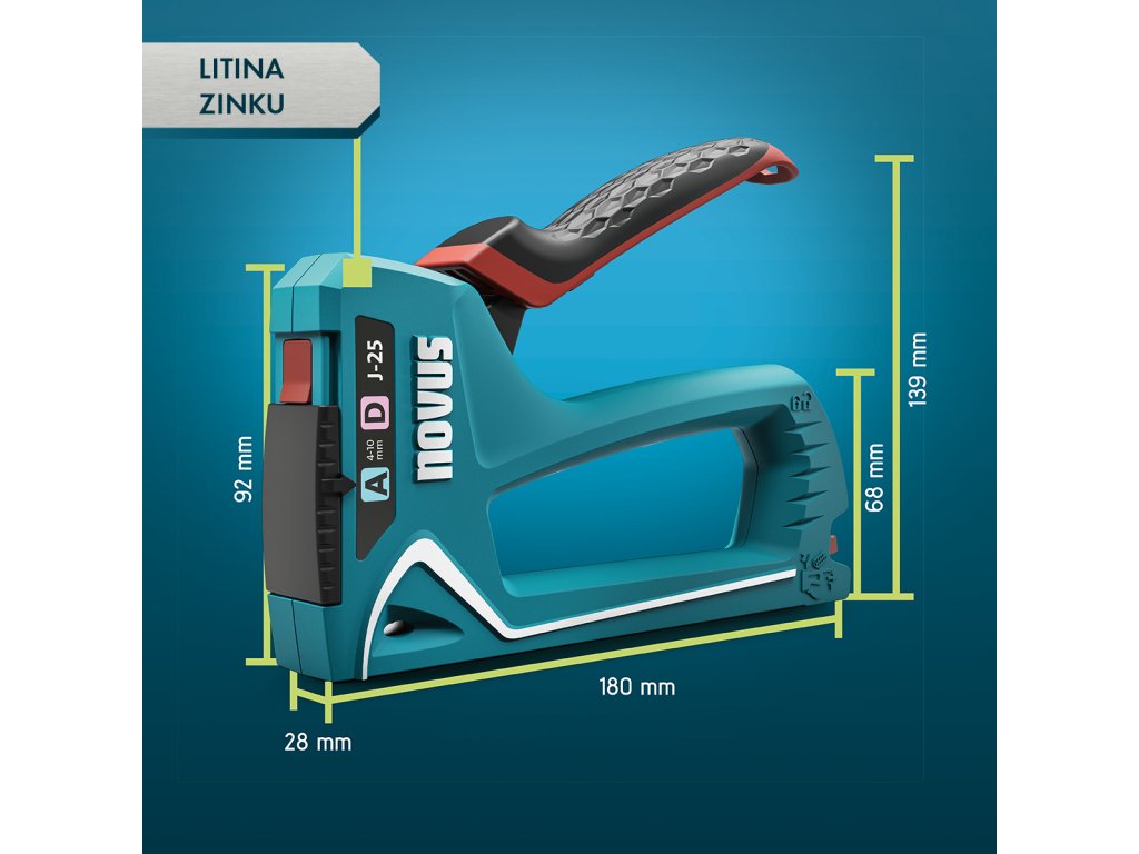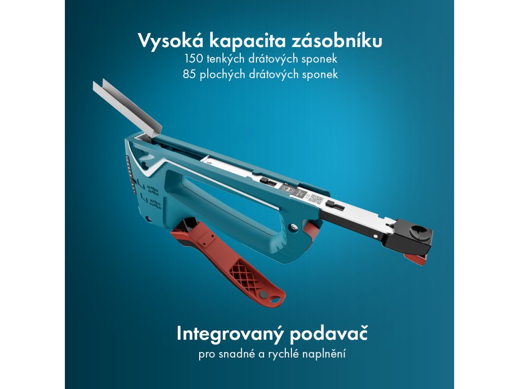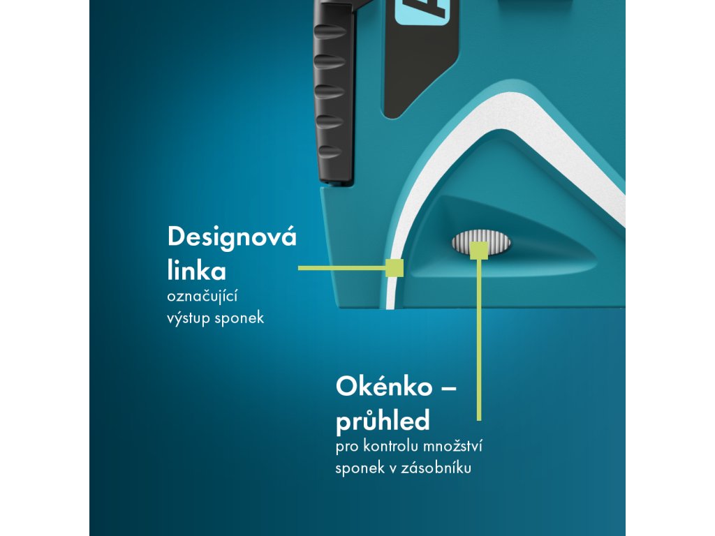 Malá profesionální sponkovačka se zpětným rázem a tělem z tlakově litého zinku. Vhodná pro připevnění tkanin a hladkého a plochého materiálu. Kompatibilní s plochými sponami typu A, D a G, H, pro kladivovou sponkovačku. Možnost přepínání mezi jednotlivými typy spon. Integrovaný podavač se spodním plnění pro snadné a rychlé doplnění. Kontrolní průhled pro rychlý přehled kapacity spon. Designová linka pro maximálně přesné usazení sponky do materiálu. Ergonomická rukojeť s bezpečnostní pojistkou a měkkým povrchem pro maximální pohodlí.Doplňkové parametry