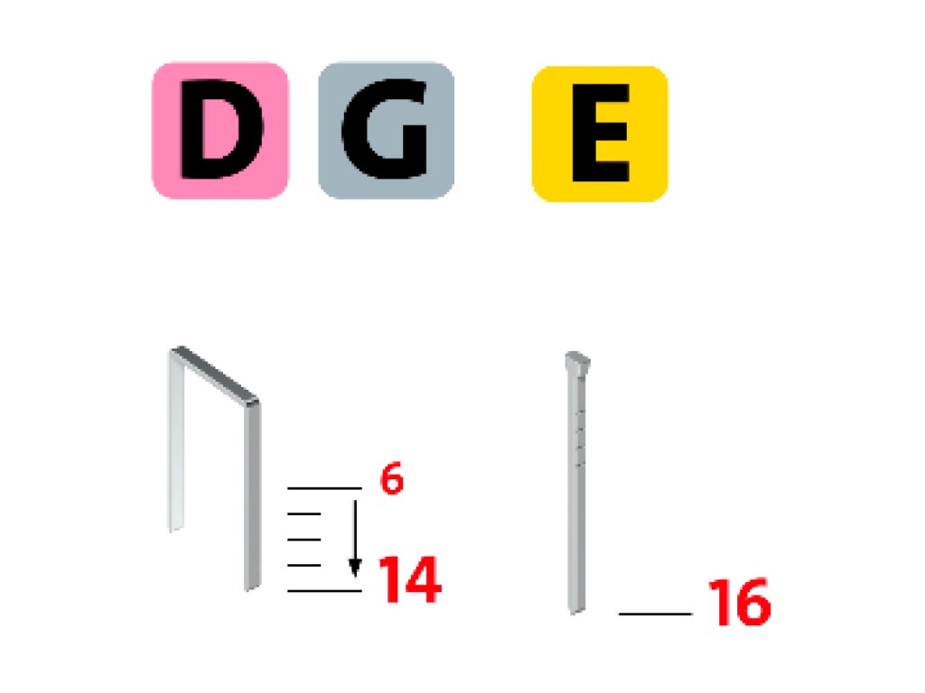 | kapacita zásobníku: | 150 ks - typ D, G/ 6 - 14 mm, hřebíky 85 ks - typ E / 16 mm |