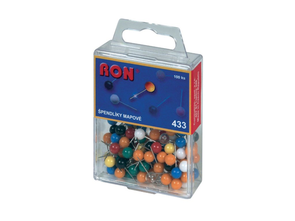 Špendlíky mapové RON - kuličky / 100 ks / barevný mix