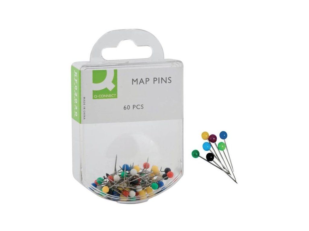 Špendlíky Q-Connect s barevnou hlavičkou, 60 ks