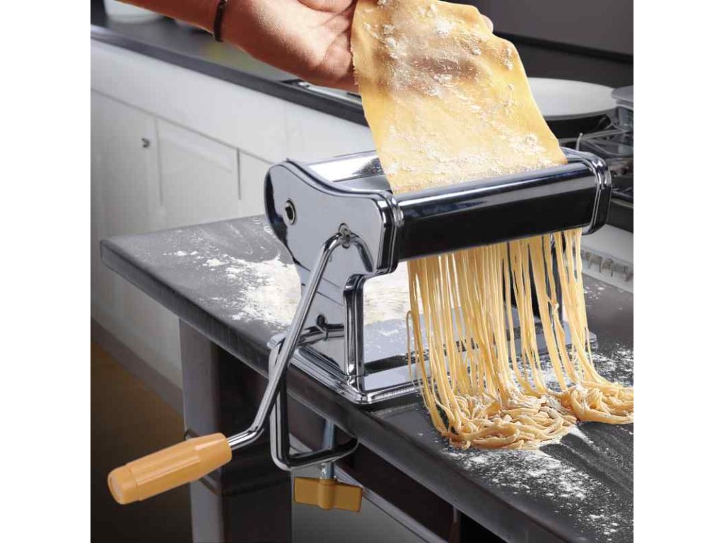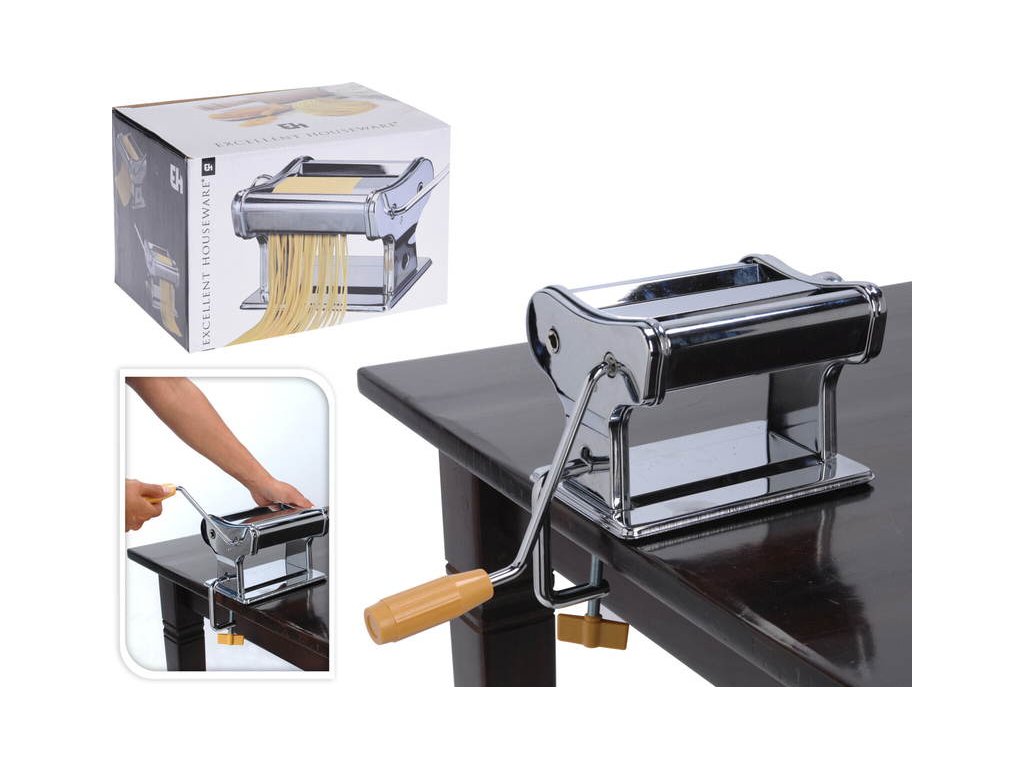 Vyrobte si originální domácí těstoviny přímo ve vaší kuchyni. Strojek na těstoviny je vyroben z nerezové oceli. Válečky jsou z chromové oceli s vysoce kvalitní povrchovou úpravou. Strojek má protiskluzový podstavec a díky nastavitelnému svěráku jej stabilně připevníte ke kuchyňské lince nebo stolu. Velmi jednoduchá manipulace a použití. Z pohodlí domova tak jednoduše zvládnete připravit lasagne, fettucine nebo špagety. - materiál: nerezová ocel / chromovaná ocel- šířka těsta až 14,5 cm- 9 různých nastavení: až 3 mm- 3 varianty: lasagne, fettuccine, špagety- značka: EXCELLENTDoplňkové parametry