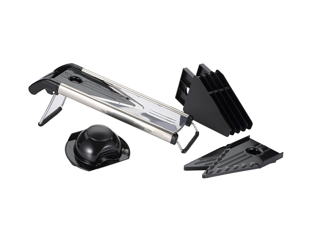- materiál: nerezová ocel / plast- rozměry: 13 x 14 x 41 cm- protiskluzové nožky- ochranný kryt na prsty- součástí balení tři různé nástavce- ideální pro brambory, zelí, jablka, cibuli, okurky, mrkev, papriku, atd.Doplňkové parametry