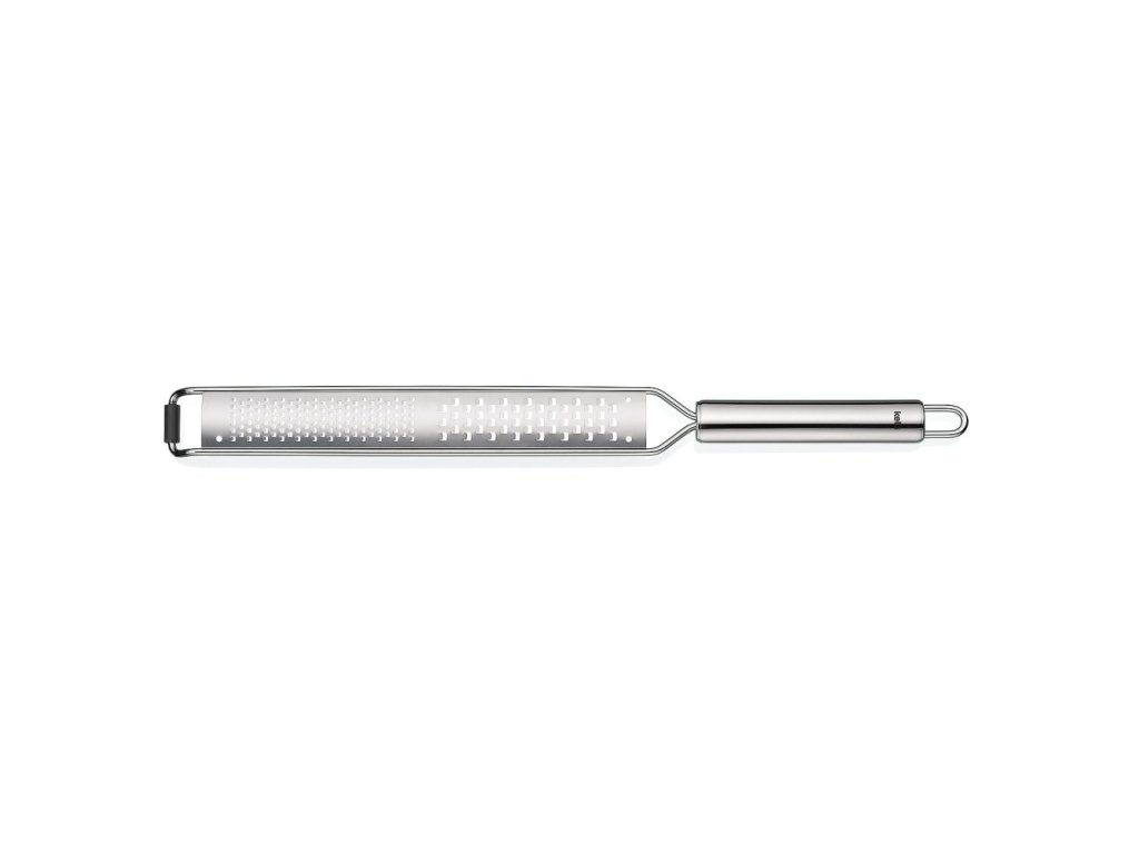 Je vyrobeno z kvalitní nerezové oceli, která zaručuje dlouhou životnost a snadné čištění. Díky svému štíhlému tvaru se struhadlo pohodlně drží v ruce a nezabírá téměř žádné místo při skladování.