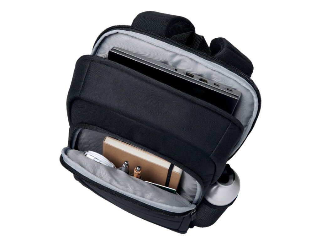 batoh na notebook EQ 14" z polyesterové příze PET vyrobené z 14,5 plastových lahví 250 ml, vyroben z 42 % recyklovaného polyesteru, moderní a pohodlný design pro notebooky do 14", polstrovaná přihrádka, přední kapsa na zip, dvě boční kapsy na láhev nebo deštník, rozměr: 280 × 410 × 85 mmDoplňkové parametry
