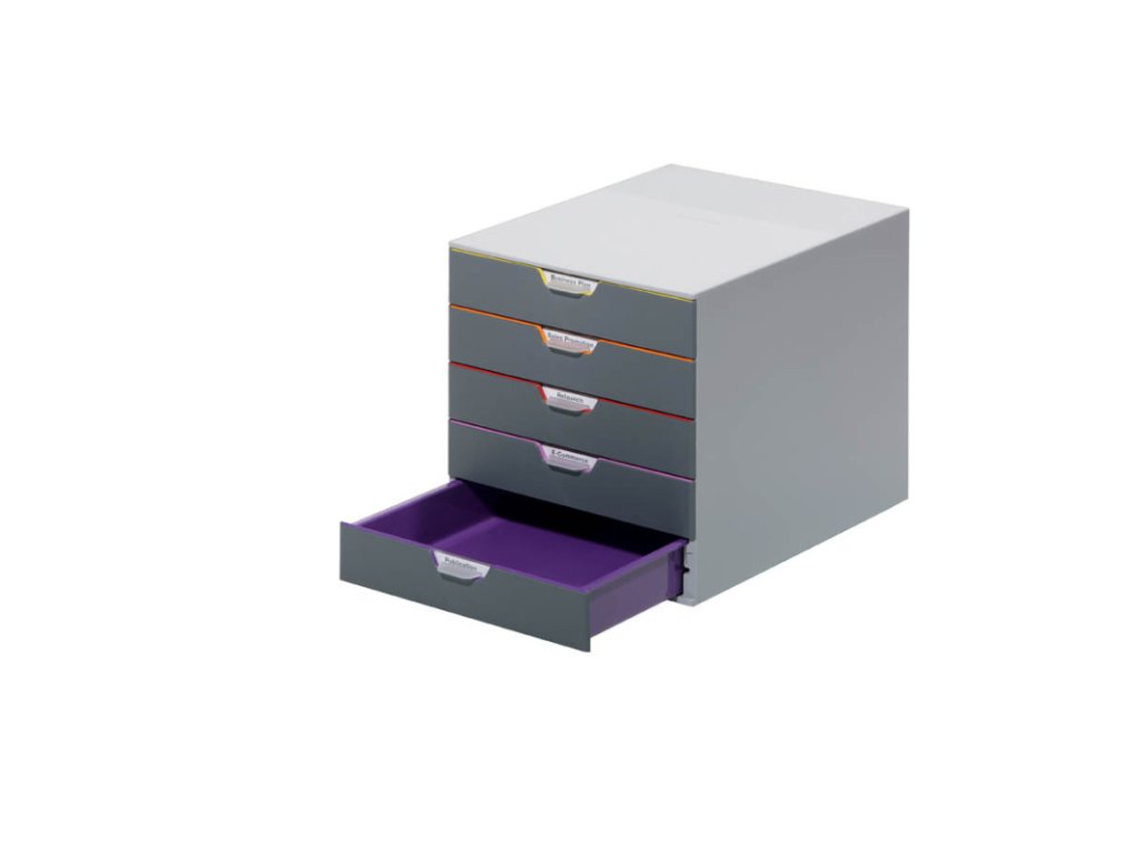 atraktivní, inovativní box s hladce výsuvnými zásuvkami a štítky pro jejich označení, box je vyroben z vysoce kvalitního plastu a je možno jej stohovat, vhodný pro tiskoviny formátu A4 a C4, ve třech provedeních – s 5, 7 nebo 10 zásuvkami, rozměry všech zásuvek jsou stejné: 280x 292x 356 (š x v x h)Doplňkové parametry