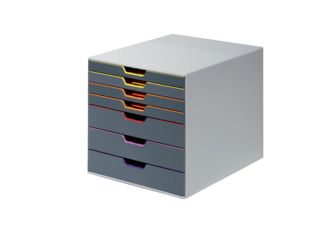 atraktivní, inovativní box s hladce výsuvnými zásuvkami a štítky pro jejich označení, box je vyroben z vysoce kvalitního plastu a je možno jej stohovat, vhodný pro tiskoviny formátu A4 a C4, ve třech provedeních – s 5, 7 nebo 10 zásuvkami, rozměry všech zásuvek jsou stejné: 280x 292x 356 (š x v x h)Doplňkové parametry