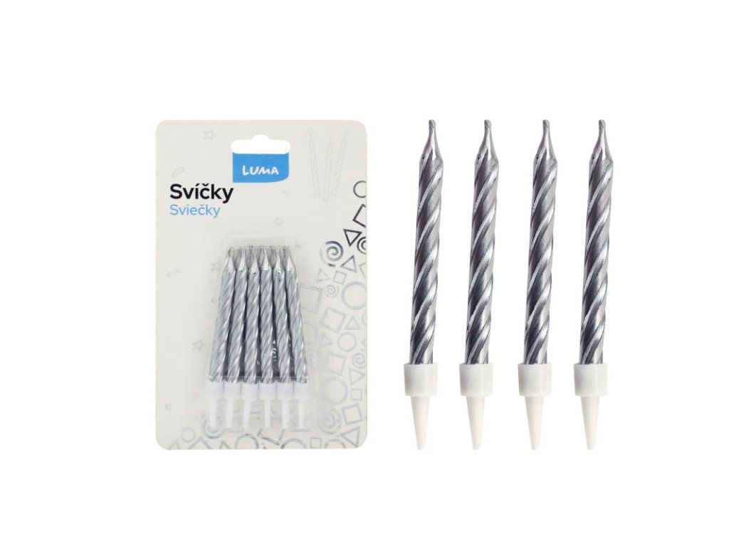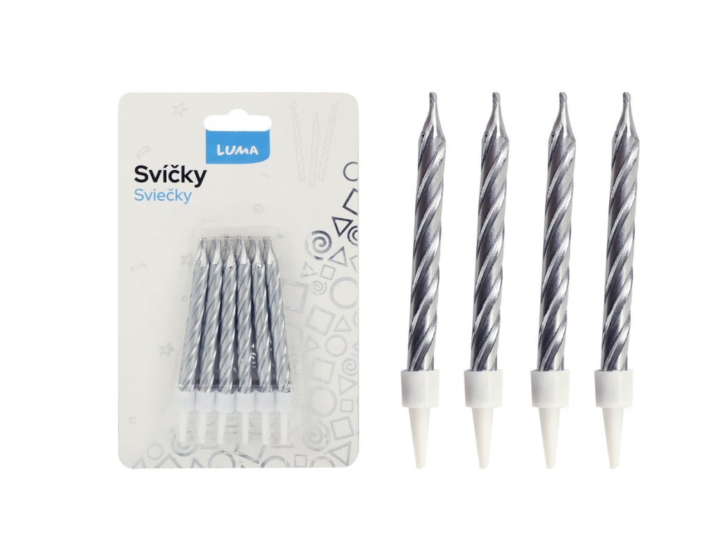 Svíčka dortová - stříbrná / 12 ks + stojánky