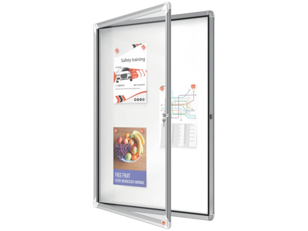 chcete-li chránit důležitá sdělení, jsou tyto vitríny ideální volbo, jsou vhodné pro vnitřní i venkovní použití, mají přední dvířka ze 4mm skla a zámek s klíčkem – dokonalé pro bezpečnost a zabezpečení, magnetické, 9 × A4, venkovní je odolná vůči povětrnostním vlivům – speciální těsnění chrání dokumenty v interiéru i exteriéru (IEC 60529), rozměry 750 x 1000 x 45 mmDoplňkové parametry
