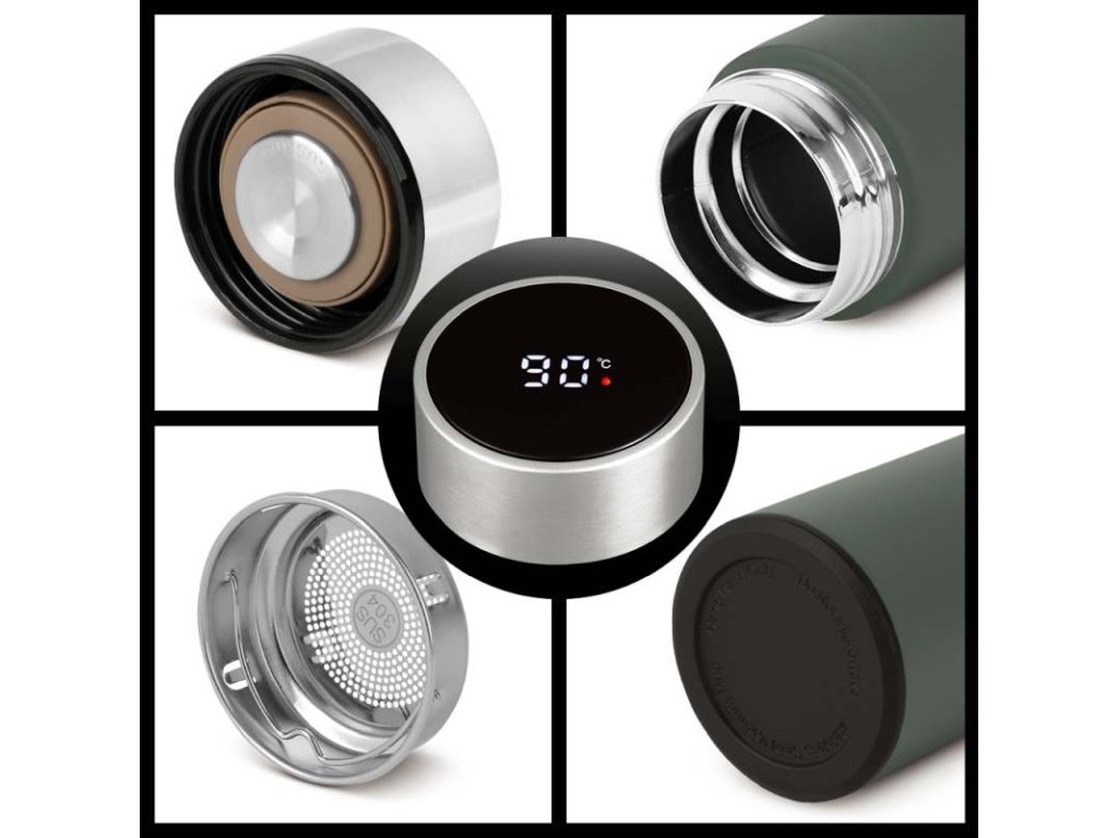 Tato stylová láhev na pití s moderním LED displejem je ideálním společníkem pro každodenní hydrataci doma, v práci i na cestách. Díky chytrému digitálnímu teploměru vždy víte, jak teplý nebo studený je váš nápoj. Elegantní matná zelená barva a kvalitní nerezová ocel z ní dělají nejen praktický, ale i designový doplněk.