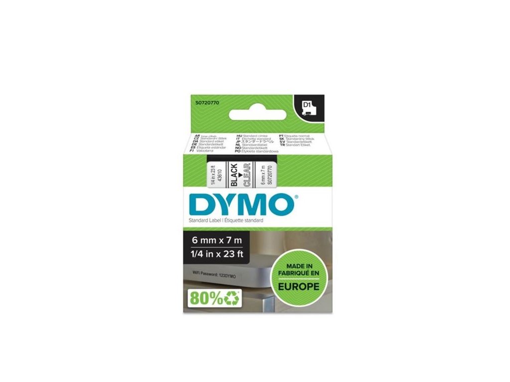 Páska Dymo D1 šíře 6 mm, černá/průhledná