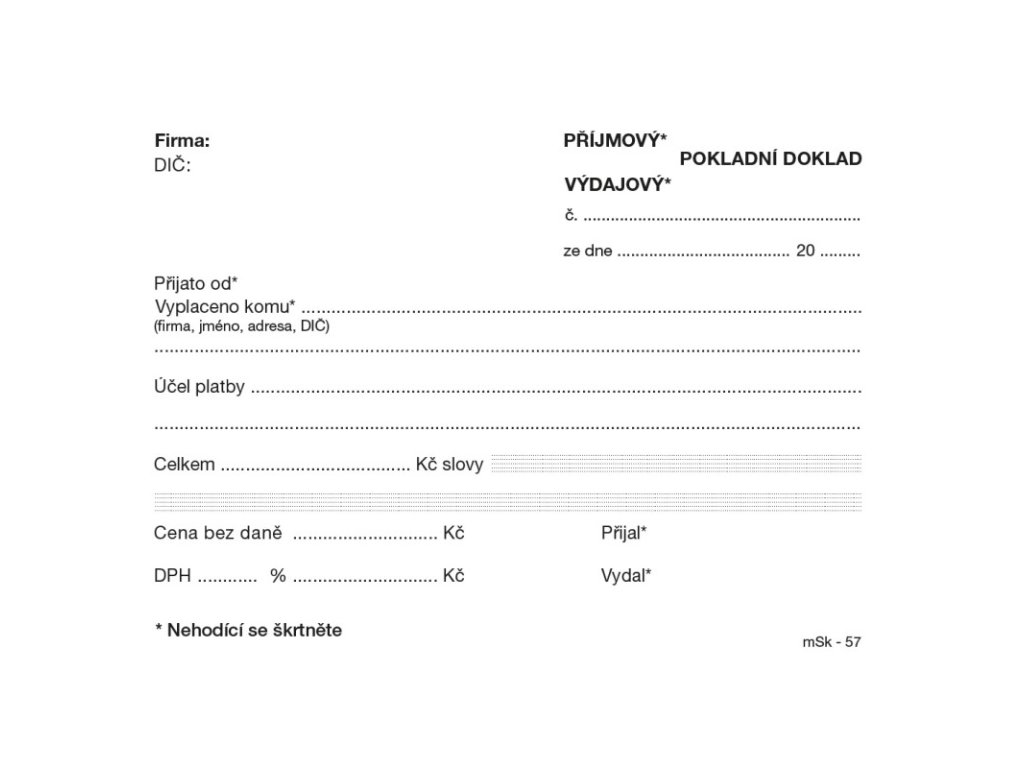 MSK 7400057 univerzální příjmový a výdajový doklad nečíslovaný 100 listů NCR A6, samopropisující