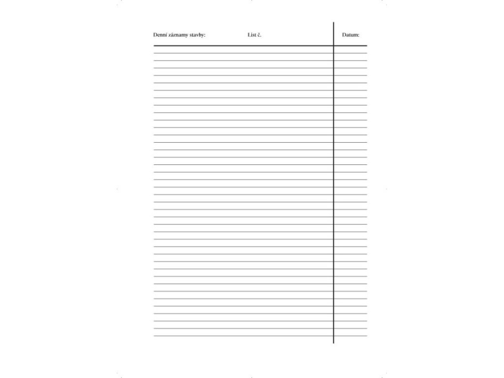 3 x 20 číslovaných listů pro denní záznamy stavby, samopropisující papír (NCR)Doplňkové parametry