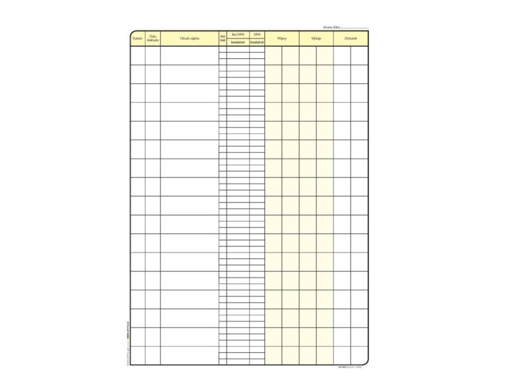 tiskopis splňuje všechny platné požadavky zákona o DPH, nečíslovaná, nepropisovací, formát A4 na výšku, 48 listůDoplňkové parametry