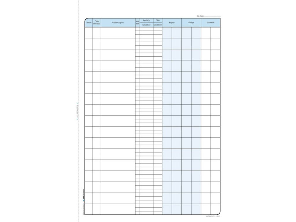 tiskopis splňuje všechny platné požadavky zákona o DPH, nečíslovaná, samopropisovací (NCR), formát A4 na výšku, 51 listůDoplňkové parametry