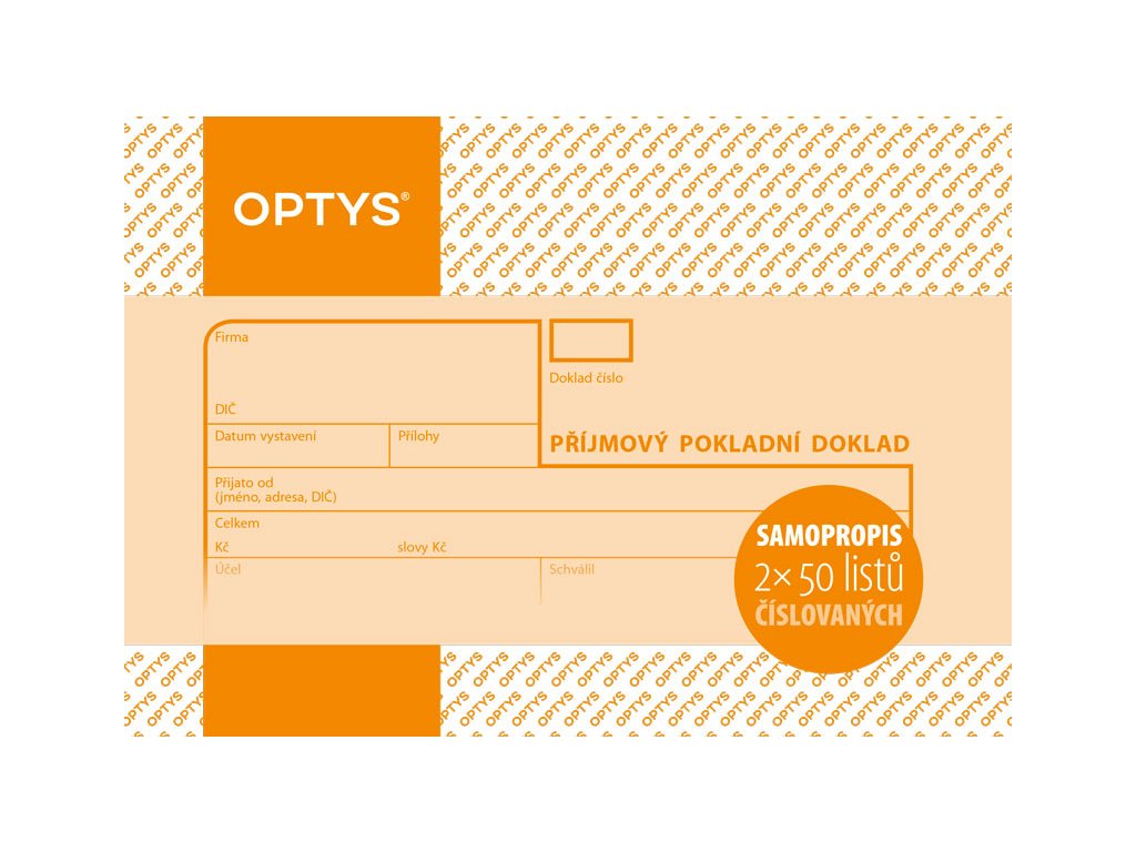 Optys 1081 příjmový pokladní doklad číslovaný 2 x 50 listů NCR A6, samopropisující