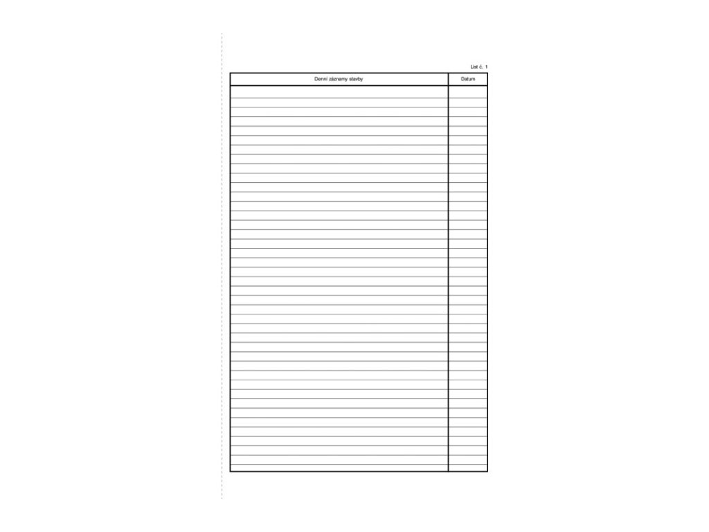 slouží k dennímu vedení záznamů o všech důležitých skutečnostech od odevzdání staveniště, zahájení až po ukončení stavby, samopropisovací, formát A4 na výšku, obsahuje 3 x 40 číslovaných listů pro denní záznamy + 8 listů pro ostatní důležité záznamyDoplňkové parametry