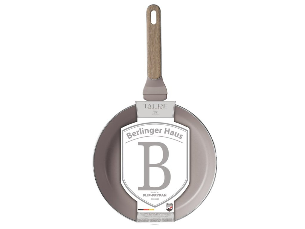 Technické parametry:• Materiál: ražený hliník s nepřilnavým povrchem TitanPro• Výklopná pánev pr. 26 cm 2,8 l• Barva: matná taupe, design dřevaREGISTROVANÝ DESIGN BERLINGERHAUS!Vlastnosti:• 3vrstvý odolný nepřilnavý povlak TitanPro• Ergonomická rukojeť s měkčeným povrchem, stříbrnou vložkou a barvou světlého dřeva, která zůstává chladná• Minimalistický styl• Matný povrch• Turbo indukční dno systém• Vhodné pro všechny typy varných desek• Ekologicky šetrné bez PFOA, olova a kadmia• Snadno se čistíDoplňkové parametry