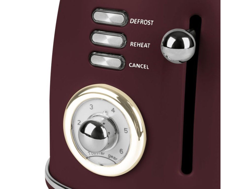 Tento topinkovač v matné bordeaux barvě přináší do vaší kuchyně nejen elegantní vzhled, ale i vysokou funkčnost. Díky širokým otvorům a víceúčelovým funkcím si snadno připravíte své oblíbené pečivo – od tenkých toastů až po silné plátky chleba nebo bagely. Výkon 850 W zajistí rychlý ohřev a rovnoměrné opečení.