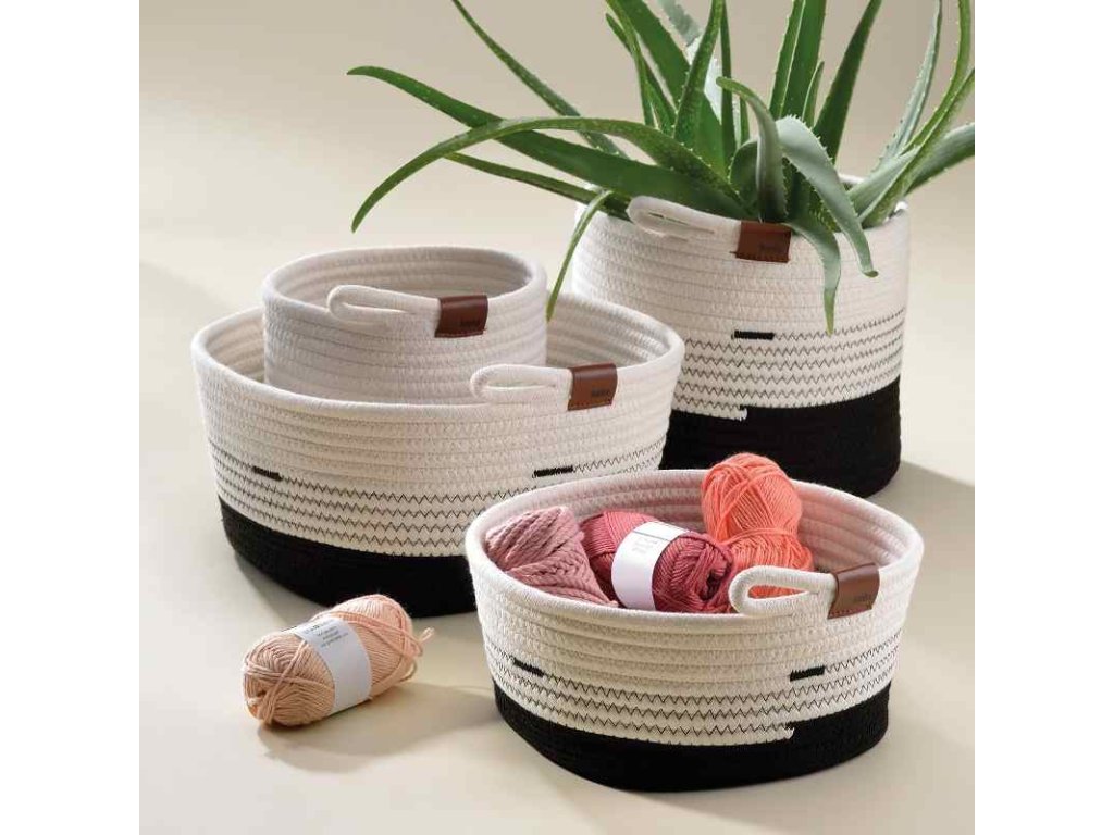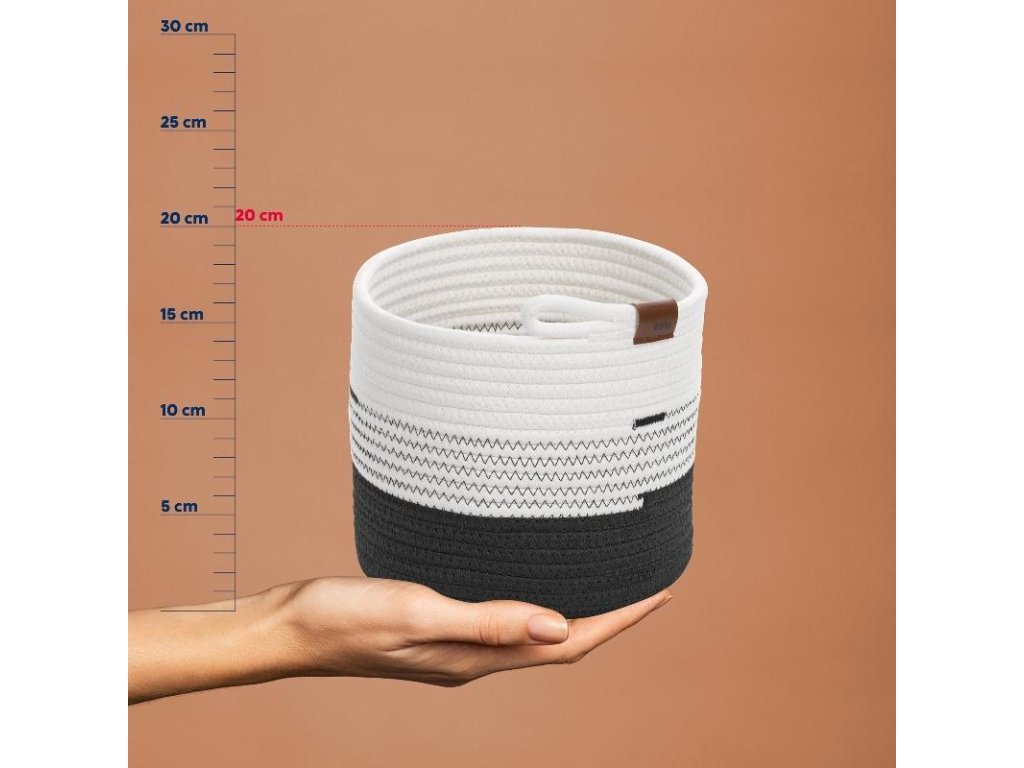 Udržovat pořádek a uklízet je zábava: černo/bílý úložný koš ze směsových vláken - ze série Hedda od kela. Všestranný a robustní koš s copánkovým vzhledem má rozměry: 23 cm a výška 20 cm Směs bavlna/polyester 23 cm, v. 20 cmDoplňkové parametry