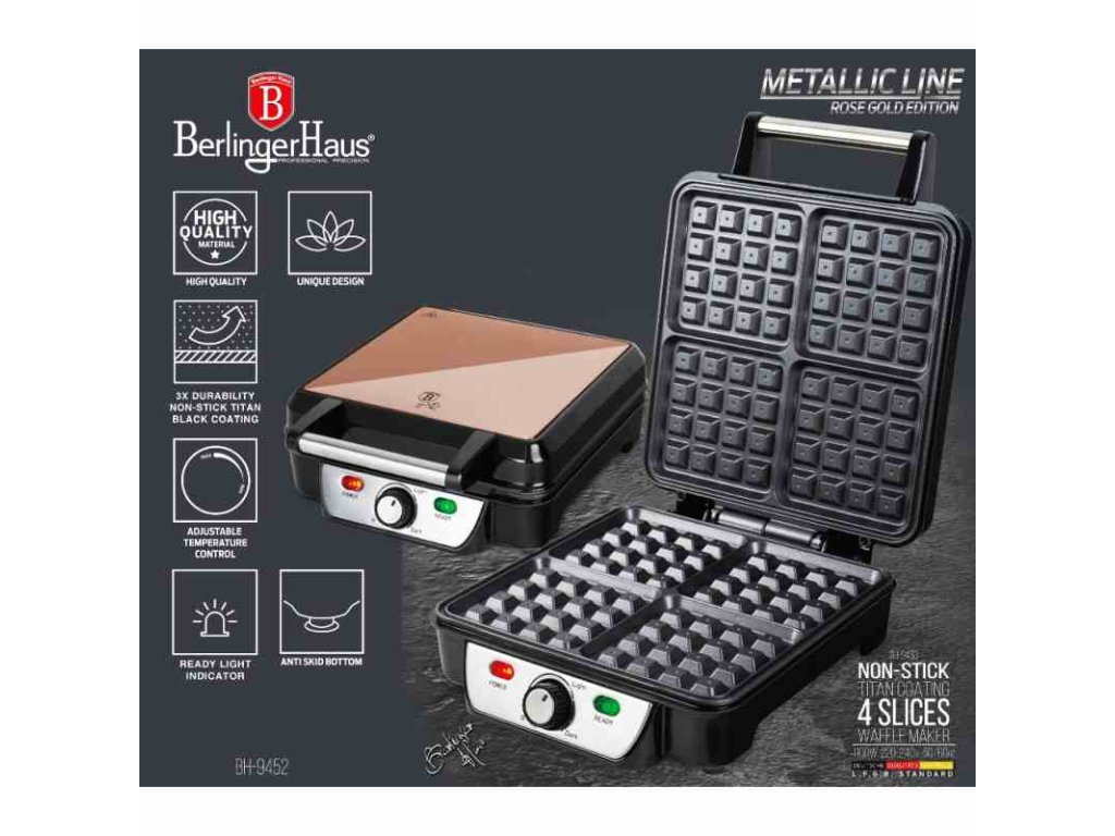 BERLINGERHAUS Vaflovač na 4 vafle Rosegold Metallic Line BH-9452