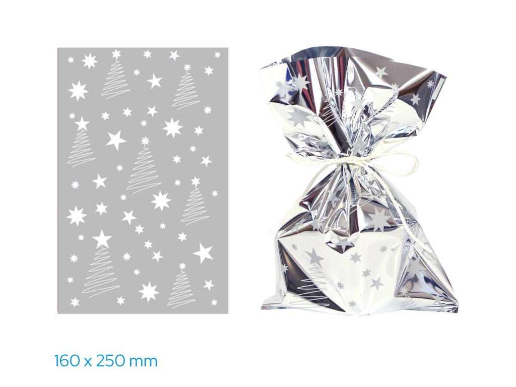 Vánoční celofánový sáček - stříbrné stroměčky / 16 x 25 cm