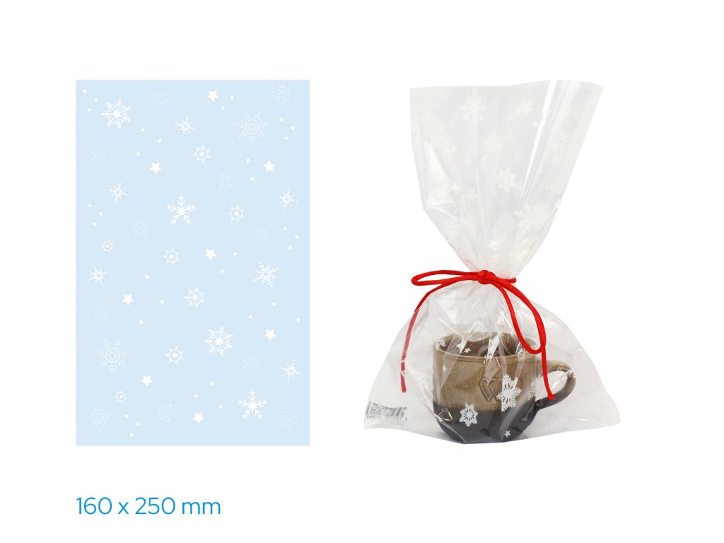 vánoční celofánový sáček transparentní, oboustranný bílý potisk, materiál: BOPP, rozměr: 16 x 25cmDoplňkové parametry