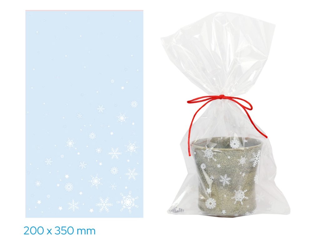 Vánoční celofánový sáček - transparentní vločky / 16 x 25 cm