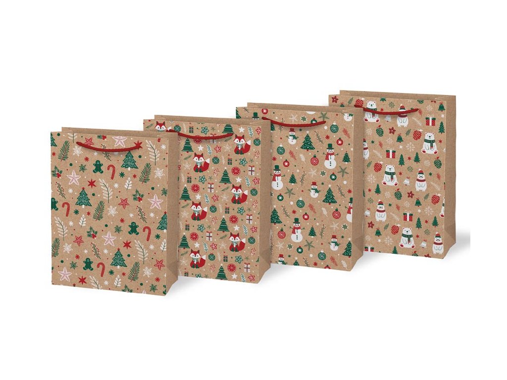 Vánoční dárková taška KRAFT M - mix motivů / 19 x 25 cm