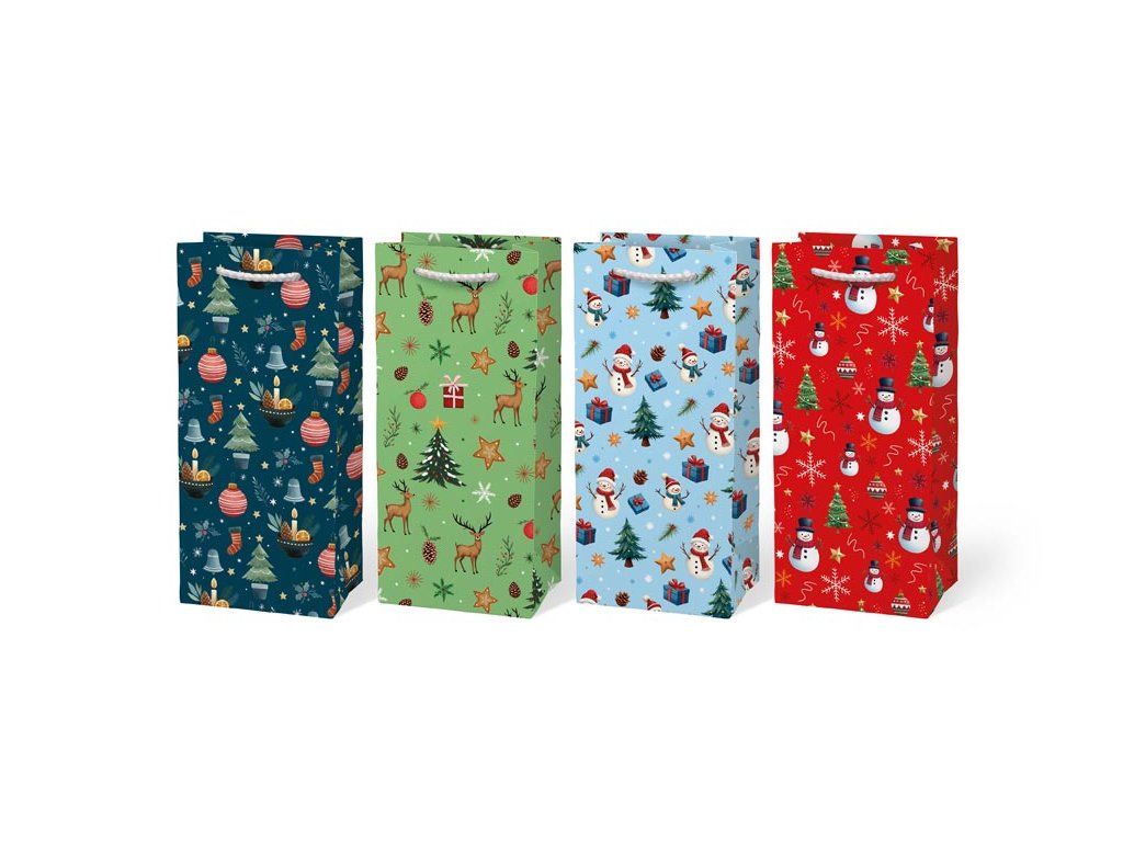 Elegantní a praktická vánoční papírová dárková taška T3 od značky MFP je perfektním řešením pro každého, kdo chce darovat dárek originálně a bez zdlouhavého balení. Barevné motivy se soby, sněhuláky, stromečky a ozdobami vytvářejí kouzelnou vánoční atmosféru a dodají vašemu překvapení tu pravou sváteční jiskru.Doplňkové parametry