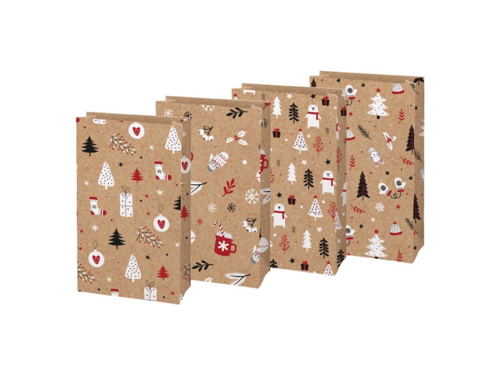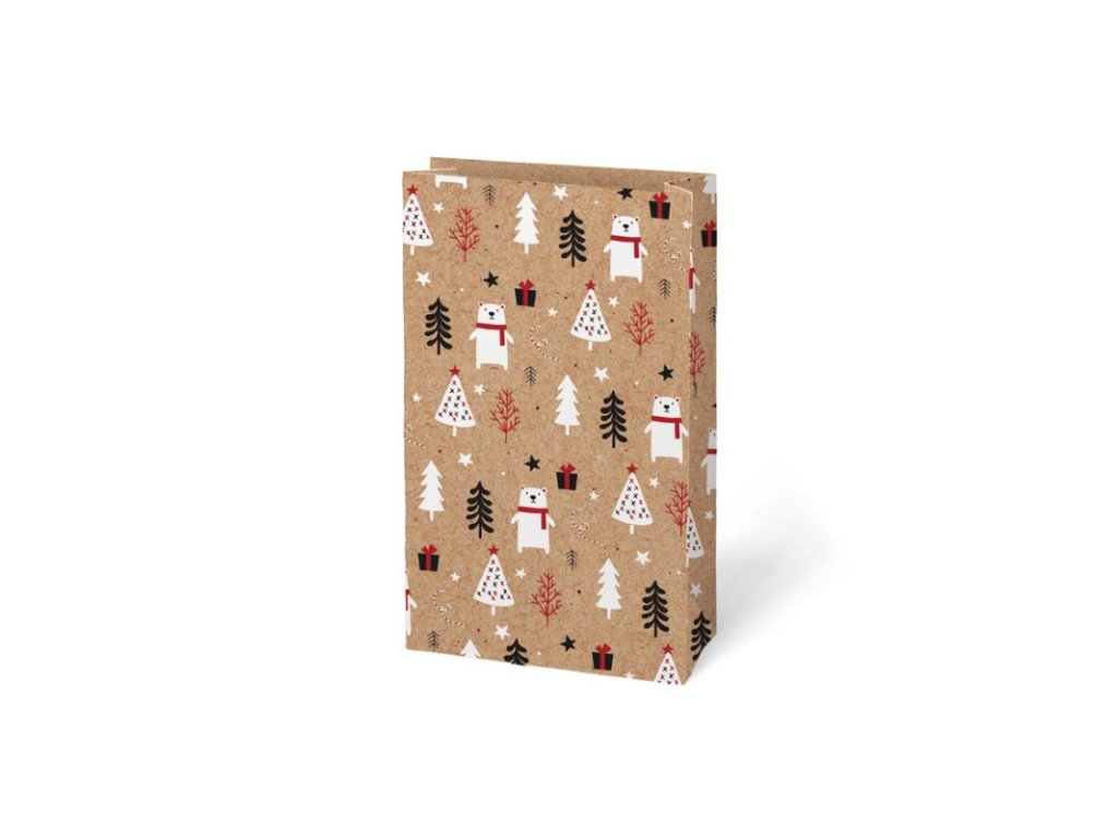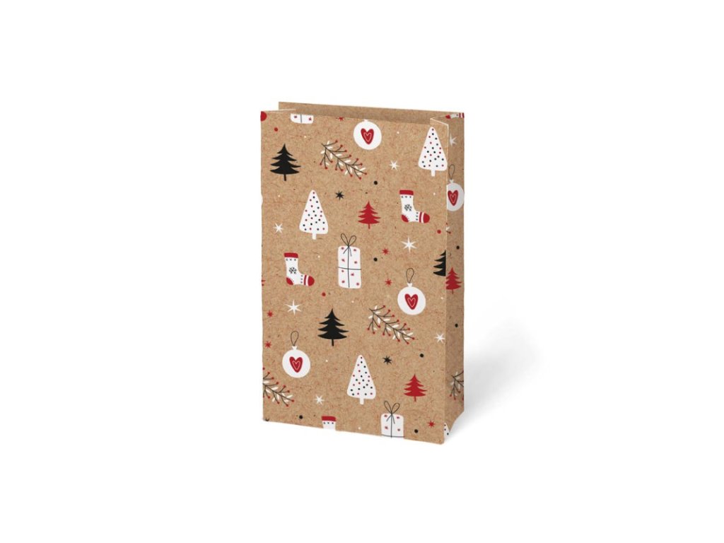 Vánoční, dárkový papírový sáček KRAFT. Sáčky jsou vyrobeny z pevného kraftového papíru. Jsou ideální na zabalení vánočního cukroví, perníčků nebo sušeného ovoce. K uzavření sáčku můžete použít dekorativní kolíček, samolepící jmenovku nebo stuhu a vytvořit tak jedinečný dárek. Gramáž: 120 g ZVOLENÝ MOTIV UVEĎTE DO POZNÁMKY. Negarantujeme dodání Vámi zvoleného motivu.Doplňkové parametry