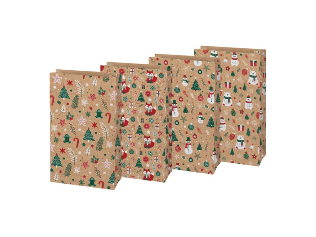 Vánoční sáček KRAFT 3 - mix motivů / 15 x 27 x 9 cm