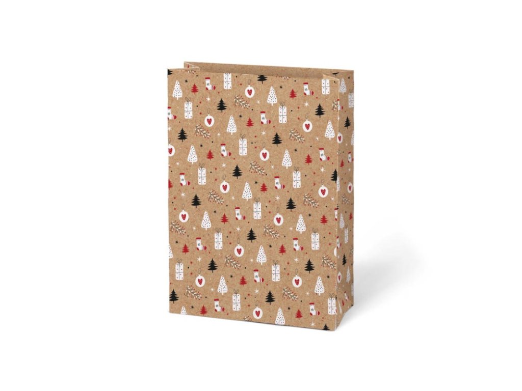 Vánoční, dárkový papírový sáček KRAFT. Sáčky jsou vyrobeny z pevného kraftového papíru. Jsou ideální na zabalení vánočního cukroví, perníčků nebo sušeného ovoce. K uzavření sáčku můžete použít dekorativní kolíček, samolepící jmenovku nebo stuhu a vytvořit tak jedinečný dárek. Gramáž: 120 g ZVOLENÝ MOTIV UVEĎTE DO POZNÁMKY. Negarantujeme dodání Vámi zvoleného motivu.Doplňkové parametry