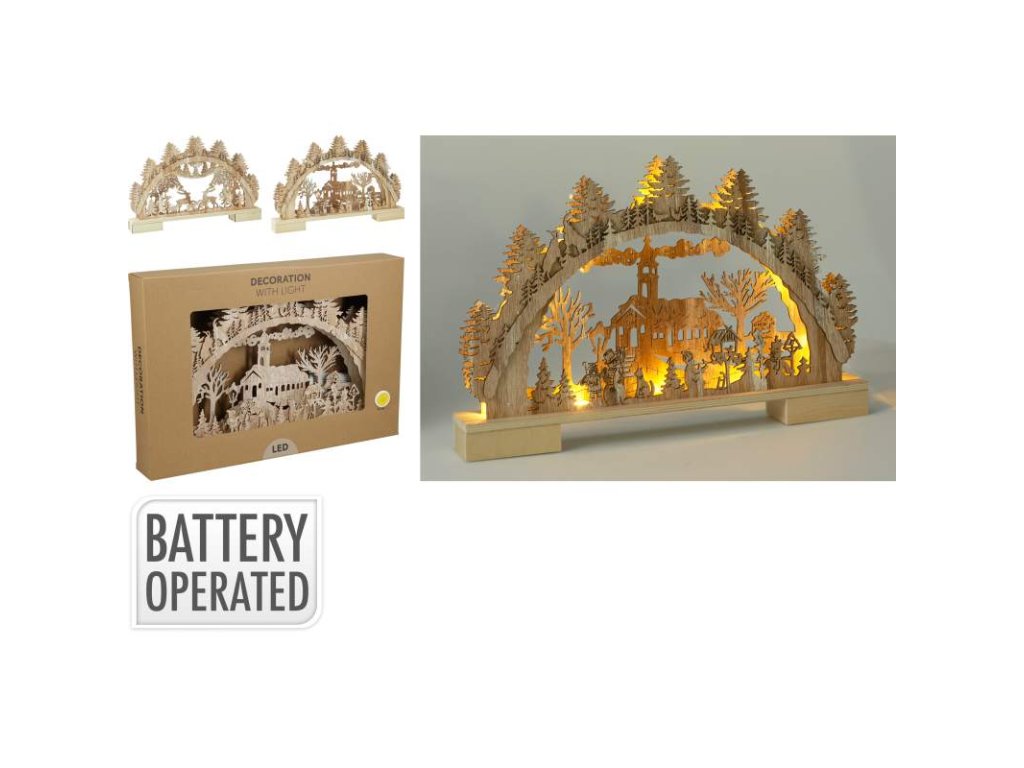 Kouzelná vánoční dekorace z přírodní překližky navodí příjemnou sváteční atmosféru v každém interiéru. Díky LED osvětlení krásně září a nabízí dvě varianty vánočních scén, které zútulní váš domov.