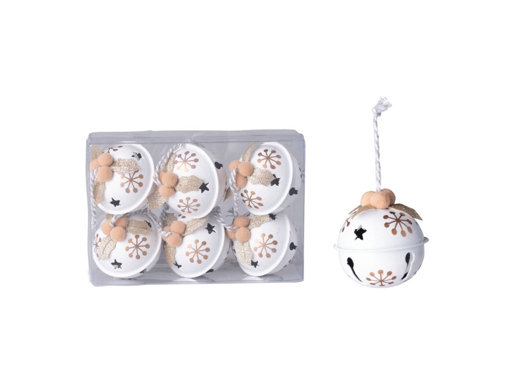 Rolničky s dekorem 6ks 50mm, bílá