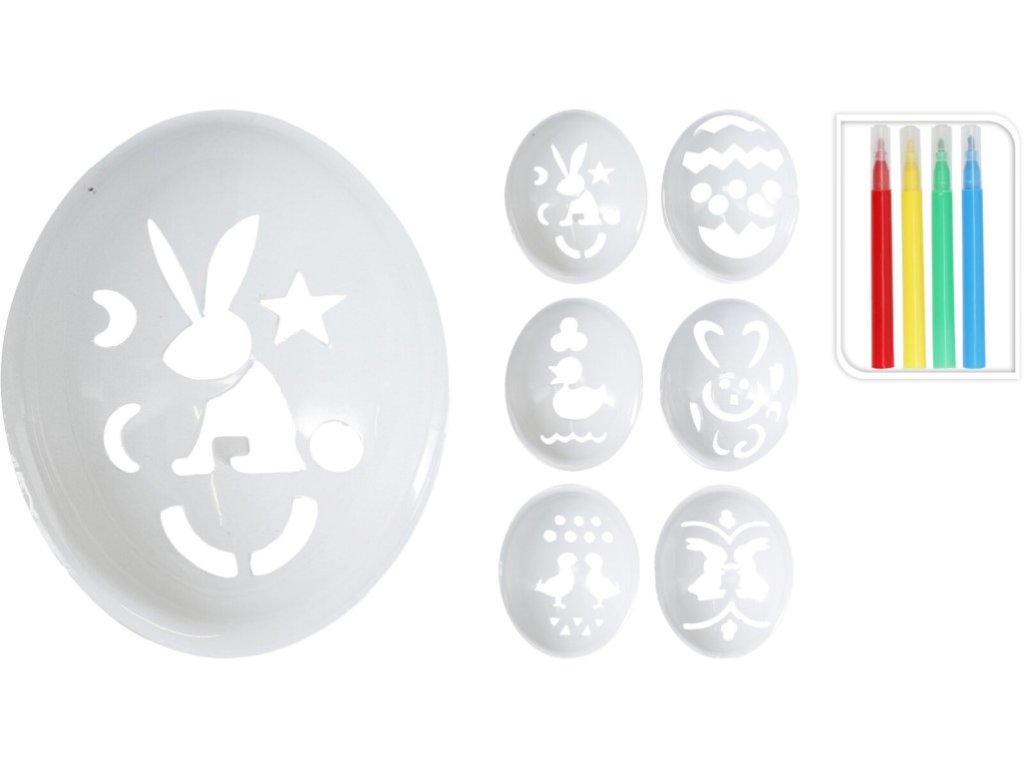 Sada na dekorování polypropylen 6ks 200x190x10mm šablony vajíček + 4ks mini fixy mix, bílá