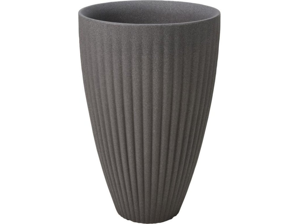 Květináč z plastu (polyetylenu) v barvě světle šedé s reliéfními pruhy na vnější straně. Tento krásný květináč ze série Roma je úžasným doplňkem vaší zahrady/terasy. Pro venkovní použití. Květináče kulatého tvaru.