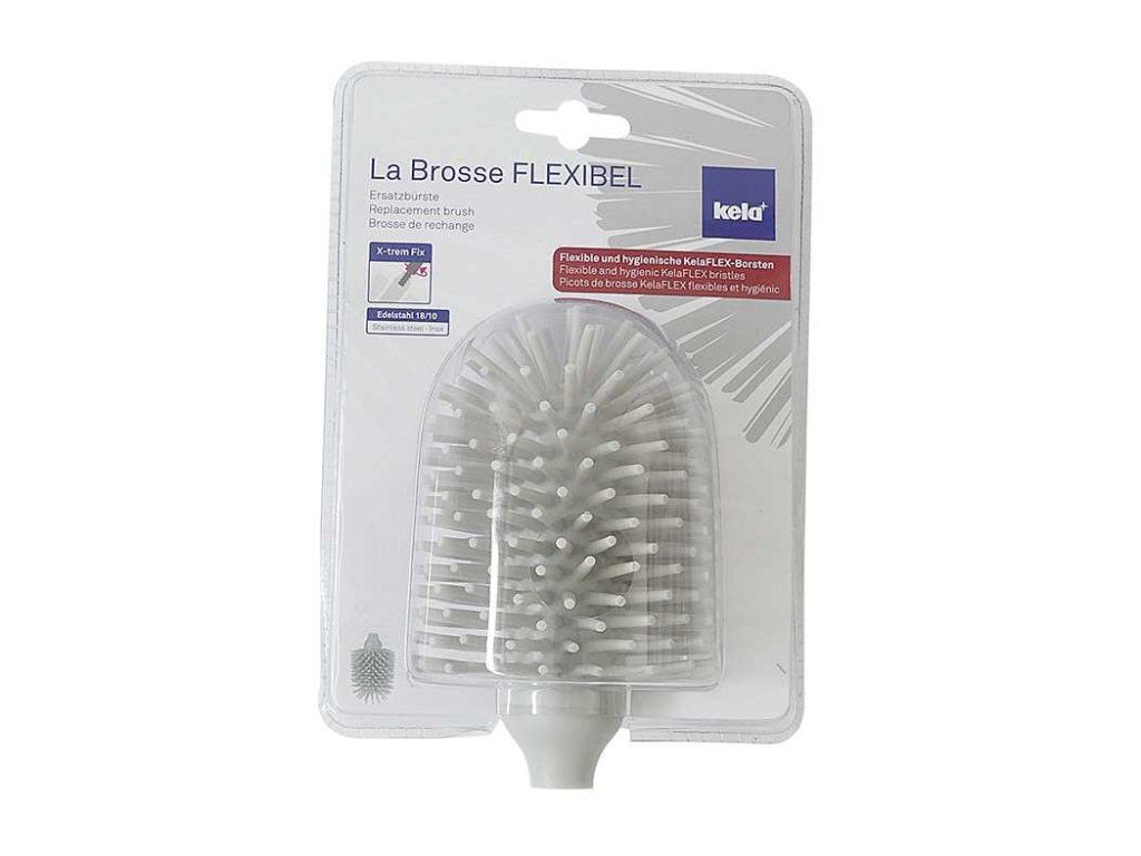 Sháníte náhradní kartáčkovou hlavici k WC setu? Světle šedá náhradní hlavice WC kartáče La Brosse FLEXIBEL má výšku 12,5 cm a průměr 8 cm. Vyrobeno z PP plastu. Vhodné pro všechny WC soupravy Kela se systémem La Brosse. Co je na této variantě zvláštní: Kartáček má silikonové štětiny, které umožňují lepší odvod vody Hlavička z PP plast, světle šedá, se štětinami TPR, 8 cm, 12,5 cmDoplňkové parametry