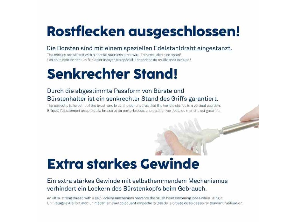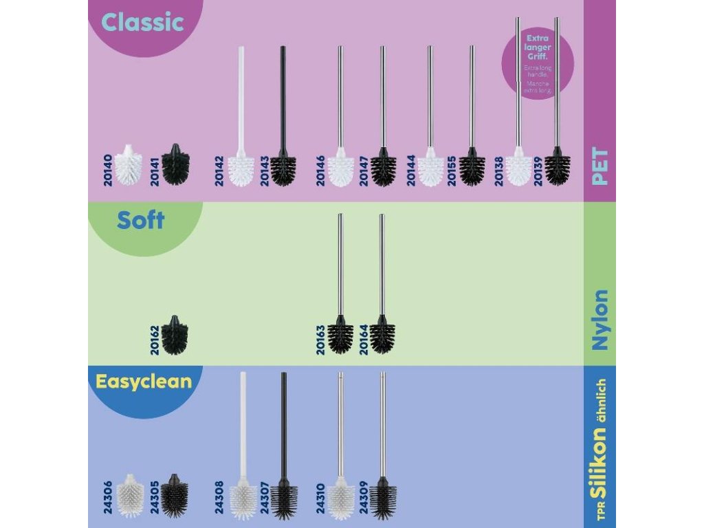 Praktický náhradní kartáč s extra dlouhou rukojetí na WC set - pro pohodlnější používání. Náhradní WC kartáč s bílou hlavicí kartáčku má délku 52,0 cm a průměr 8 cm. Vyrobeno z lesklé nerezové oceli.PP plast bílý, PET štětiny.Dlouhá rukojeť z nerezové oceli 8cm, 52cm leskláDoplňkové parametry