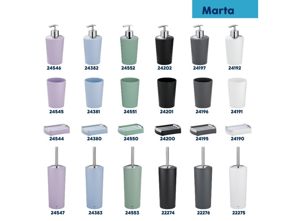 Tato sada je součástí širší kolekce Marta, která se vyznačuje jednoduchým, ale stylovým designem. Kombinujte s dalšími produkty z této řady pro kompletní vzhled vaší koupelny nebo WC.