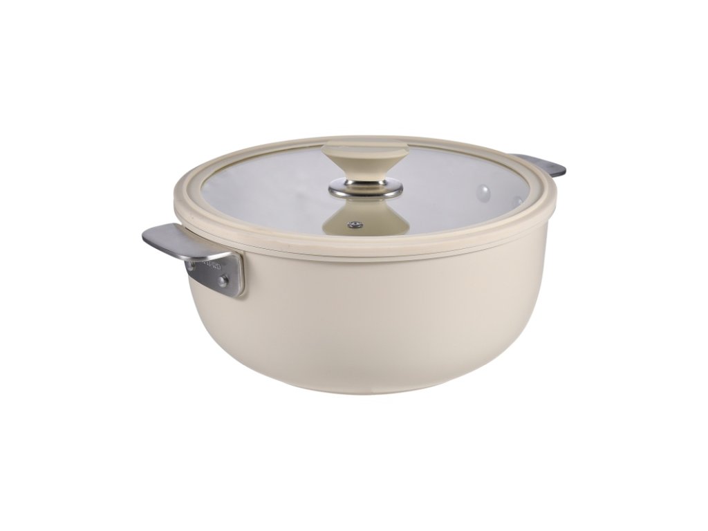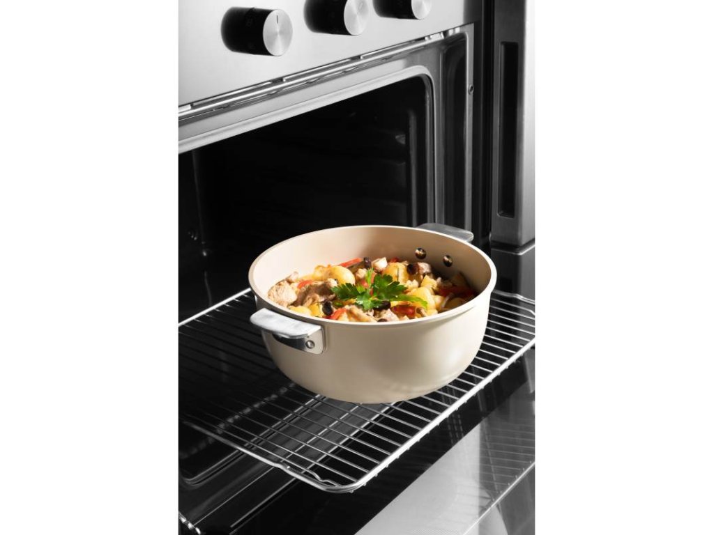 Vnitřní povrch: ILAG Ultimate – prvotřídní nepřilnavá úprava s indikátorem nahřátí povrchu Vnější úprava: béžový vysokoteplotně odolný nátěr