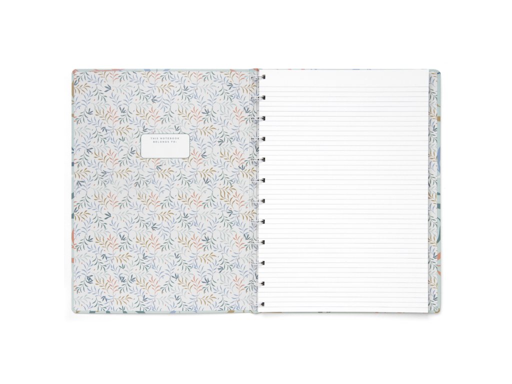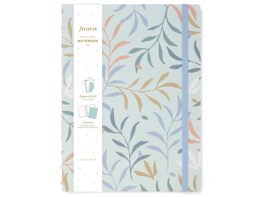 Uchovávejte vaše myšlenky a poznámky v tomto znovu plnitelném zápisníku Filofax Notebook A4 v mátové barvě z kolekce Botanical inspirovaného přírodou. Pevné kartonové laminované desky zdobí přírodní vzory nejenom z vnější strany, ale také té vnitřní. Zápisník obsahuje linkovaný papír s gramáží 100 g/m2, které je vhodné i pro plnicí pero. Listy můžete přemisťovat nebo doplňovat, což vám umožní sestavit si zápisník, který skutečně vyhovuje vašim potřebám. Jeho bílá dvoudrátová vazba mu umožňuje ležet naplocho a barevně sladěná gumička vám pomůže udržet vše na svém místě.Obsah