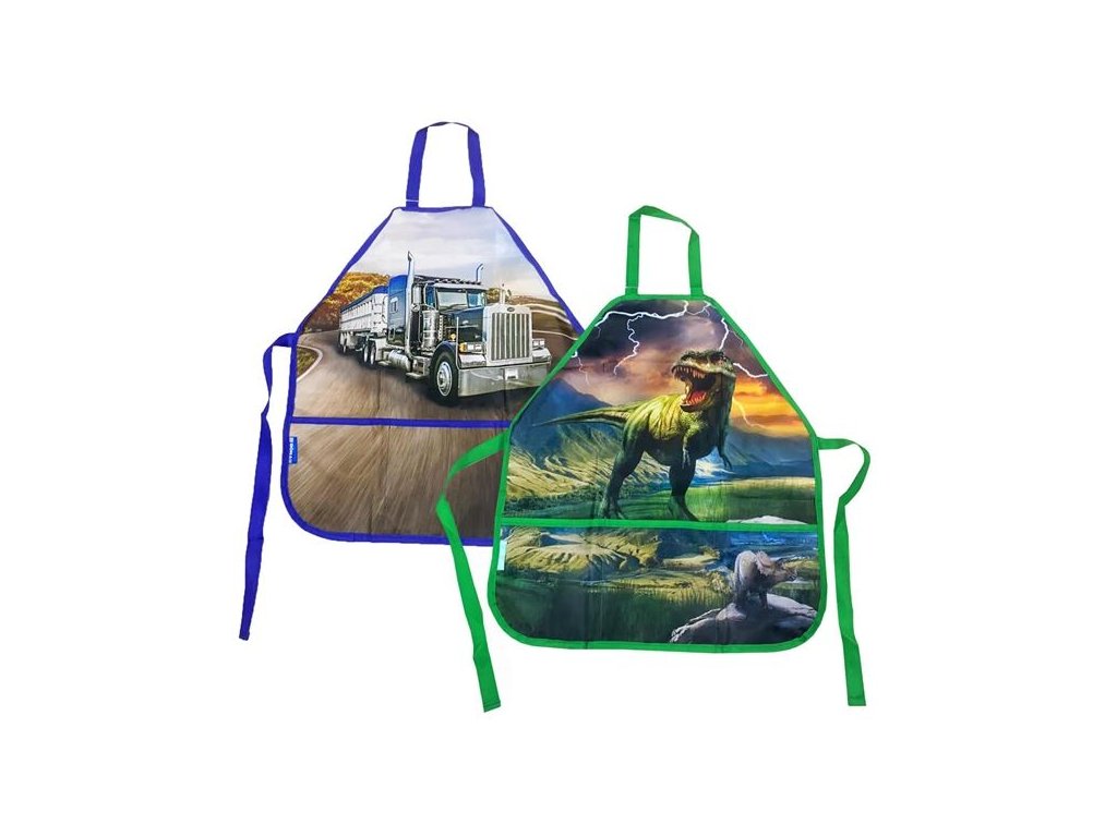 Dětská malířská/řemeslná zástěra s potiskem 2 chlapeckých motivů (nelze vybrat)Velká přední kapsa se 3 kapsami na malířské a kutilské potřebyZapínání na suchý zip u krku a popruhy na zádechVčetně jmenovkyMateriál: polyesterRozměr: 54 x 46 cmDoplňkové parametry